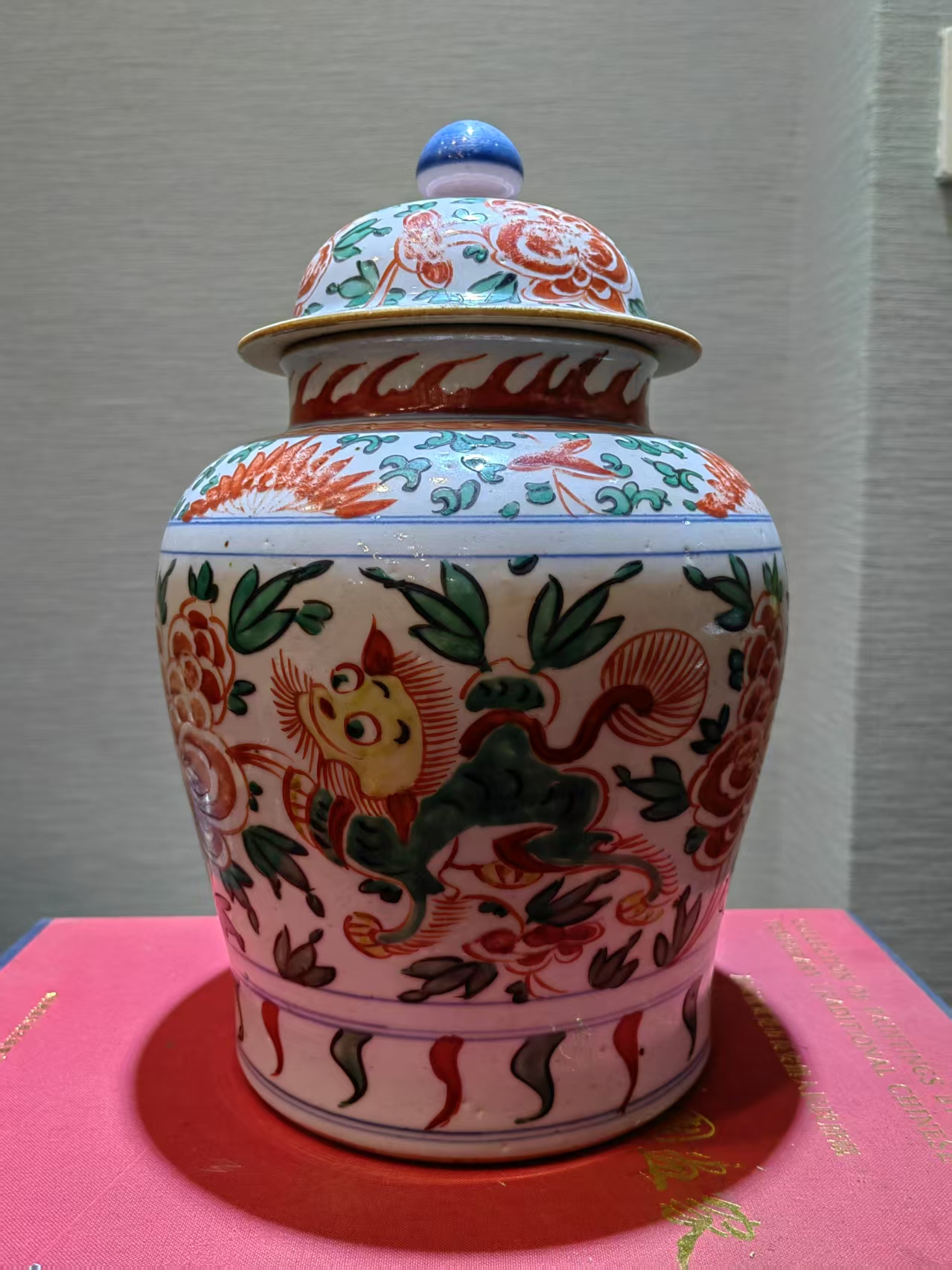明末清初的青花红绿彩瓷器在收藏市场上备受关注,尤其“狮子穿牡丹纹将军罐”因其题材吉祥、工艺独特,成为藏家追捧的对象,市场价格较高。