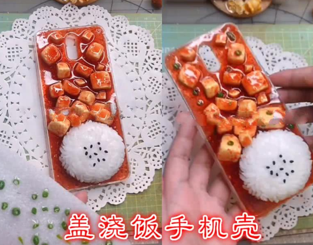 首先第1个手机壳让人看着特别有食欲,因为这是一个盖浇饭手机壳,看着浓浓的汤汁,再加上可口的豆腐,米饭上面还有几粒芝麻,这是让人看了食欲大开。拿着这样的手机壳,恐怕会胖10斤吧,每天看到之后就会无比的想吃饭。