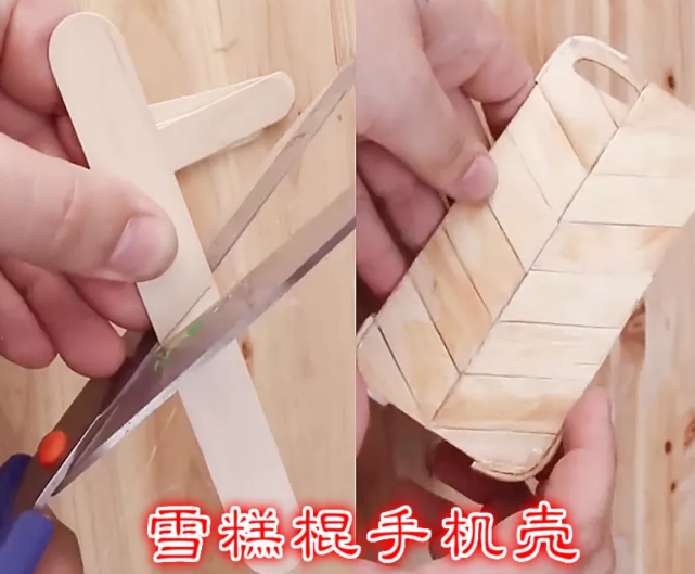 看到最后一个手机壳,真想让做手机壳的人把手寄过来,因为手实在是太巧了,只用吃完的雪糕棍就可以做出一个充满文艺气息的手机壳,真是让人赞叹大佬大佬。