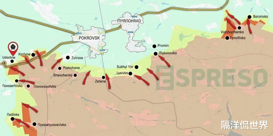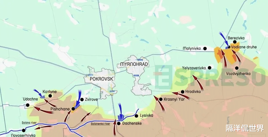 3、波克罗夫斯克方向是最具挑战性的方向,从西部的乌斯佩尼夫卡、乌达赫内、科特林到东部的沃兹德维任卡、巴拉尼夫卡。