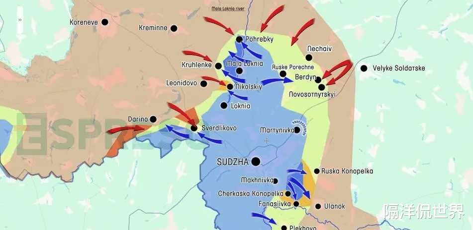在左翼,乌克兰军队成功地将俄罗斯军队从马来亚 Loknya 向北击退,并重新控制了从 Pogrebki 到 Viktorovka 的几个村庄。乌克兰也进一步向西推进并占领了 Kruglenkoye 的一部分。与此同时,俄罗斯军队试图向南的马来亚 Loknya 移动,并在 Nikolskoye 附近突破了乌克兰的防御,那里目前正在进行战斗。再往南,俄罗斯军队旨在切断乌克兰武装部队的边境,并已经袭击了斯维尔德里科沃(Sverdlikovo)村一个多月。