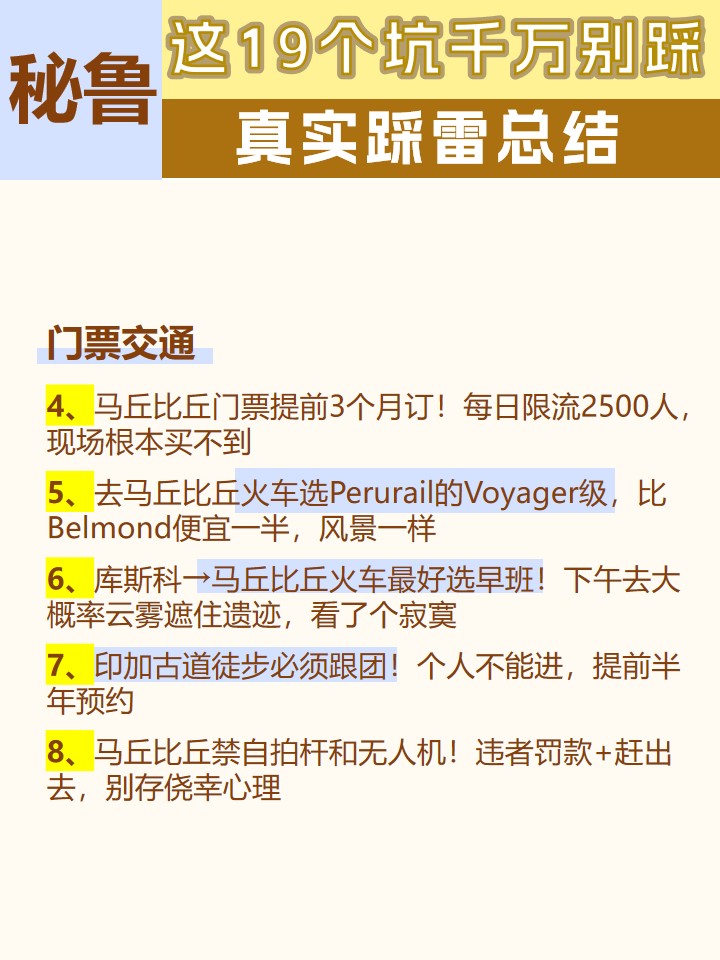 ▫️马丘比丘门票提前3个月订!每日限流2500人,现场根本买不到