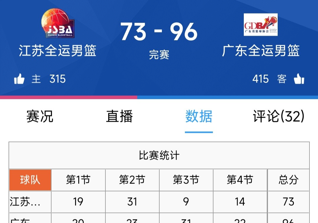 江苏男篮:蒋浩然23分4板2断2帽、郑祺龙14分6板5助、闫实11分2板1助2断、李禄曈7分2板、陶彦儒6分4板3助、刘泽希5分5板1助、张稀然4分4板4助。
