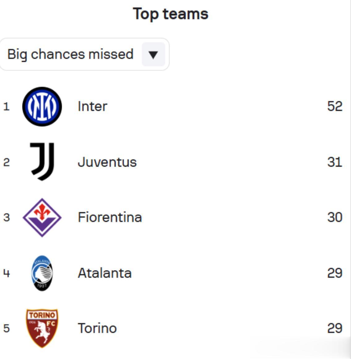 问题是,错失机会的国米球员实在太多了(全队18轮52次错失黄金机会),怎能单拎出一个球员来背锅?