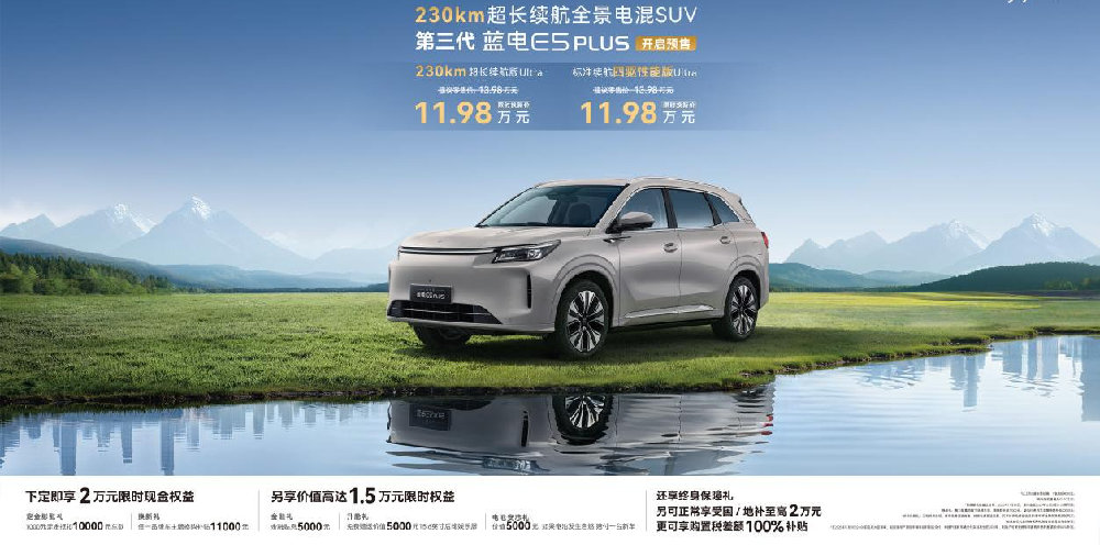 在竞争激烈的10-15万级SUV市场,第三代蓝电E5 PLUS的预售引发了不少关注。下定即享2万现金权益,以换新价11.98万元的亲民价格,带来了多项“越级”配置,预售期另可享1.5万限时权益,含后排吸顶屏,还能正常享受国补至高2万,购置税也有厂家兜底等政策,这么诚意的价格及政策,在笔者看来,无异于向市场投下了一枚“深水炸弹”。它不再满足于做一辆合格的“代步工具”,而是试图成为用户生活中的“全能伙伴”。
