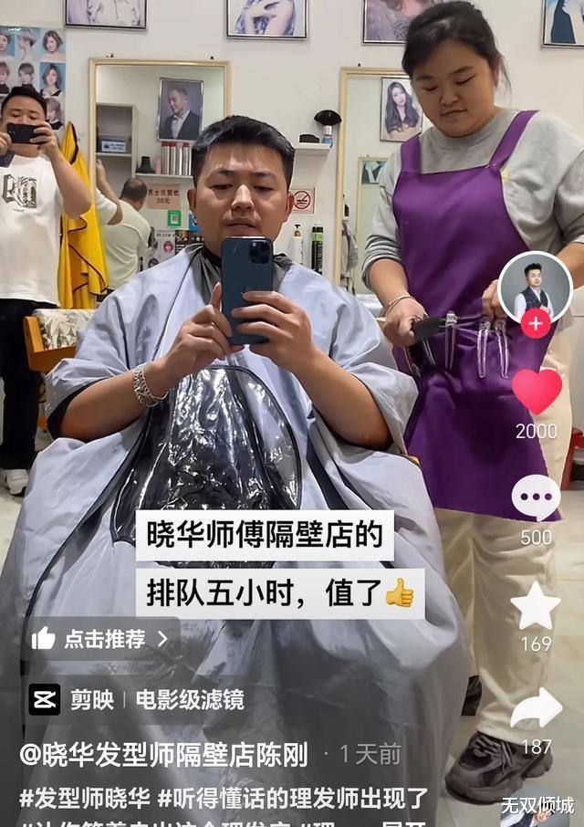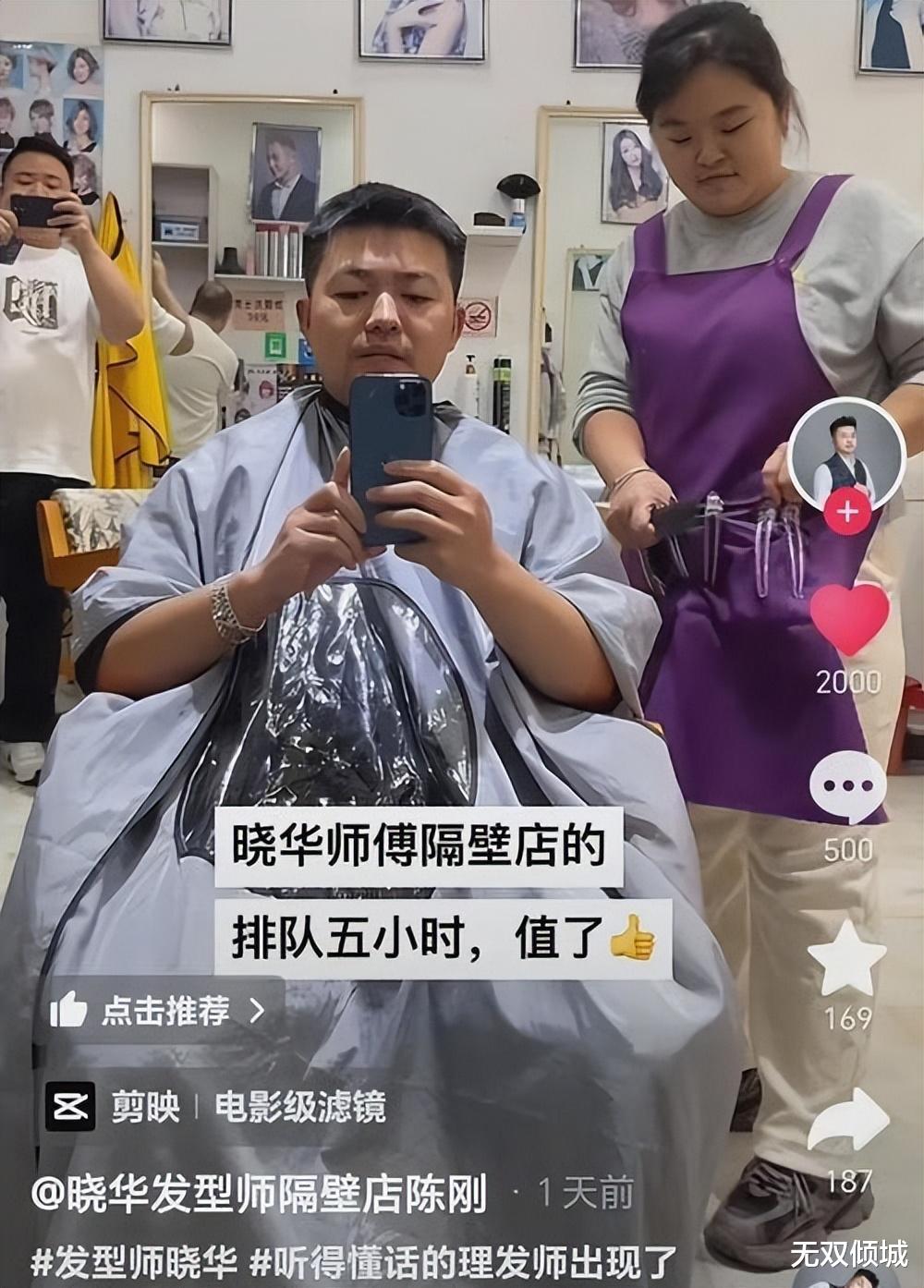 这股网络热潮直接反映到现实中,她的理发店门口排起了长长的队伍,来自各地的顾客纷至沓来,就盼着能让晓华给自己理个发。