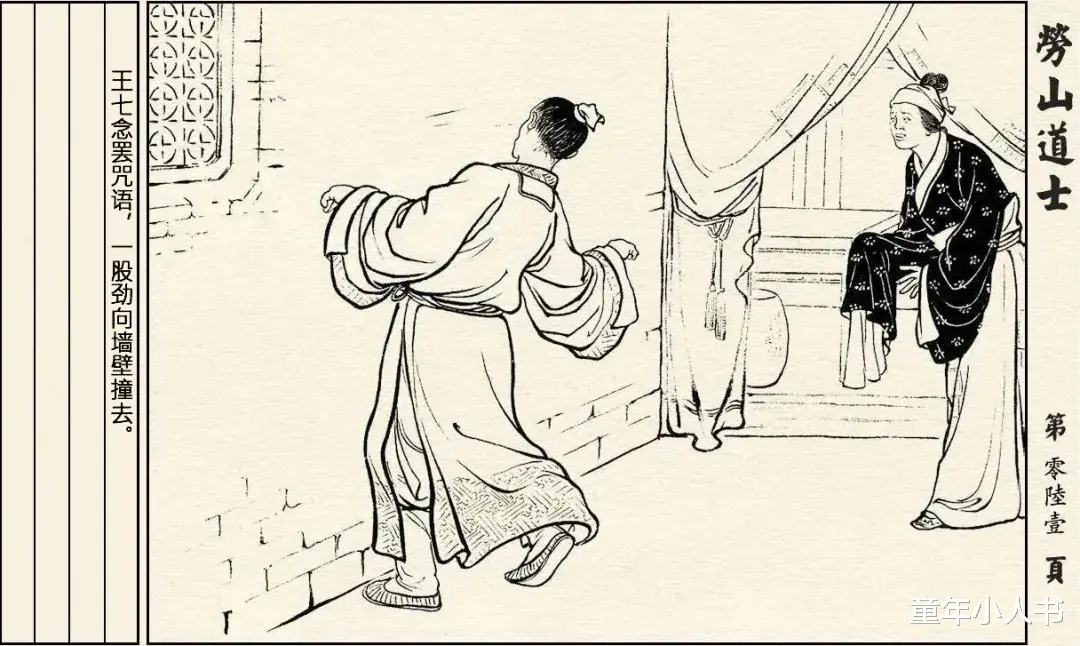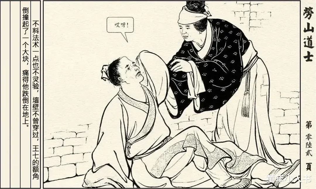 值得注意的是,连环画保留了原著中“环环相扣”的结构特点。例如王七初试穿墙术时“从容入墙而阻”的细节,为后续失败埋下伏笔,体现了改编者对原著叙事技巧的尊重。