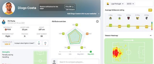 葡萄牙媒体Bola称,葡萄牙国家队的门将科斯塔已经为波尔图踢完了最后一场比赛,他没有入选波尔图对阵布拉加的葡萄牙杯决赛大名单,他们相信这名23岁的葡萄牙门将将会在下赛季出现在英超联赛,他在上次续约之后拥有一条7500万欧元的解约金条款,他将会是曼联所需要的门将。