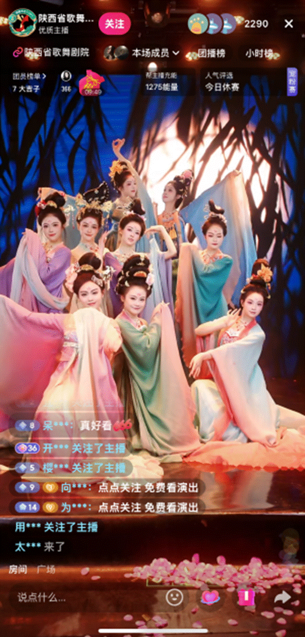 陕西省歌舞剧院通过数字化转型,在抖音平台开展专业古典舞团播,实现从初期单场观众不足50人到如今平均每场曝光超300万的突