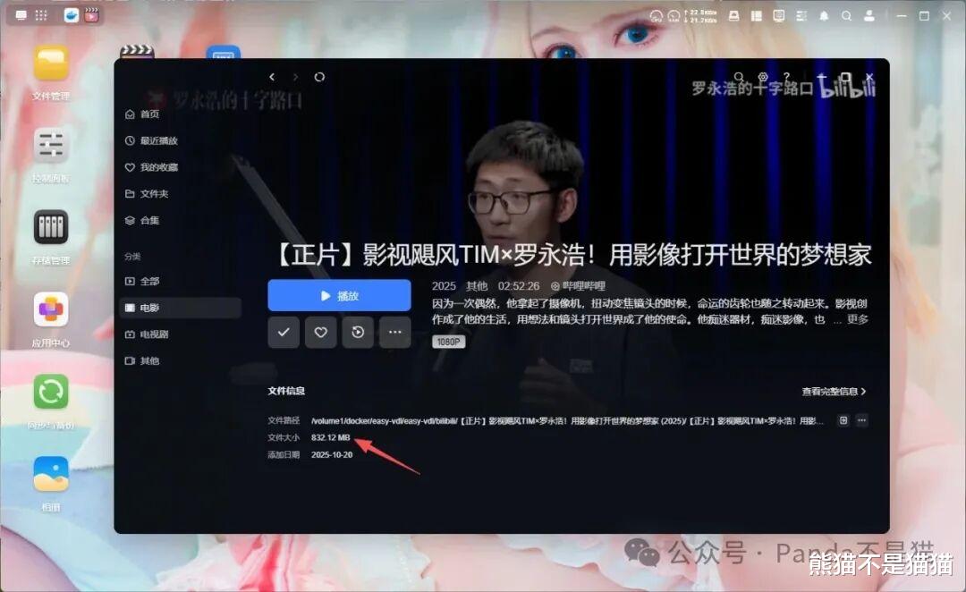 但我觉得影视库不应该就只有这么点内容,且很多自媒体博主的内容其实并不比电影、纪录片等等差多少,例如熊猫就非常喜欢看B站“食贫道”的“大宝鉴”系列,短视频领域也有一些非常不错的翻唱或者精良制作,也都蛮不错的,甚至于赛事的内容其实也可以保存下来慢慢观看。