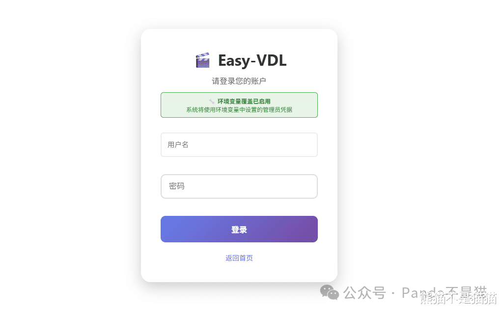 version: '3.8'services: easy-vdl: image: qq918652593/easy-vdl container_name: easy-vdl ports: - "888:80"# 主服务端口 volumes: - ./easy-vdl:/app/downloads # 下载文件目录 - ./easy-vdl/logs:/app/logs # 日志目录 - ./easy-vdl/database:/app/database # 数据库目录 environment: # UI端口配置 - EASY_VDL_PORT=80 # 容器内部UI端口 # 管理员账号配置(可选,不设置时首次进入UI可图形化设置) - EASY_VDL_ADMIN_USERNAME=admin # 管理员用户名 - EASY_VDL_ADMIN_PASSWORD=admin123456 # 管理员密码 - TZ=Asia/Shanghai restart: unless-stopped