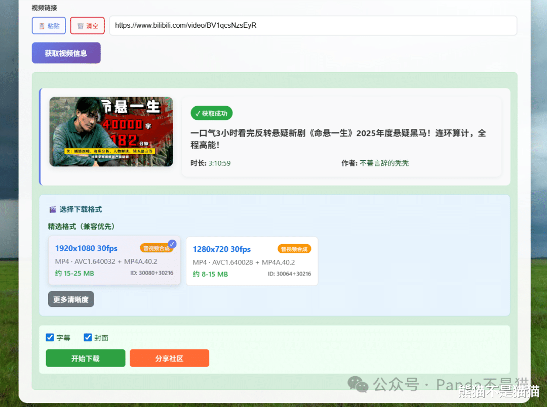 解析之后项目会自动拉取视频的封面以及标题甚至简介,同时如果有字幕文件,也能同步下载字幕文件,这些信息在下载之后会被直接写入到nfo文件中,在视频下载这里如果你有会员,那么清晰度的选择会更高。(显示的预估大小和实际下载大小并不一致,实际会大很多)