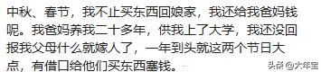 我给我爸妈的都是我自己工作挣的,过节除了给娘家买东西,还要给钱,所以婆家说不出什么。