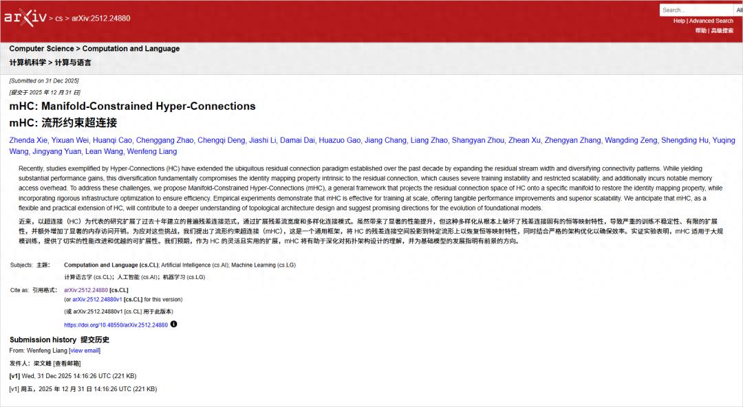 《 mHC: Manifold-Constrained Hyper-Connections 》