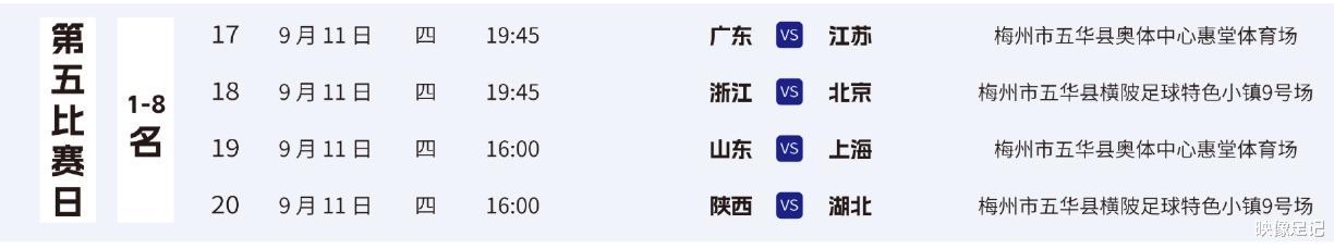 重庆队与陕西队的直接交锋,将决出另一个出线席位。上半场比赛,陕西队尚金航率先破门;易边再战,最后时刻重庆队依靠着点球机会由邱国轩将比分扳平。最终,重庆1-1陕西,以1分之差排名小组第三,无缘前八。陕西队则是携手浙江队闯进八强!值得一提的是重庆队作为预赛成绩最好的队伍,决赛阶段的一档球队,无缘小组出线。