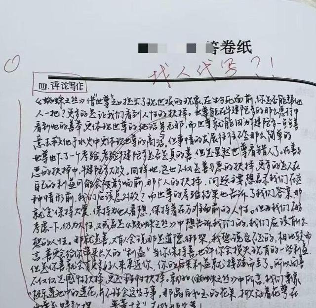 但这位老师却显然没这么想。或许是阅卷太多心生疲惫,又或者曾经有过类似的“作弊案例”,他在看到卷面上两种截然不同的字迹后,直接做出了“找人代写”的判断,并迅速给出了严厉的处分。于是,一场“字体风波”拉开了帷幕。