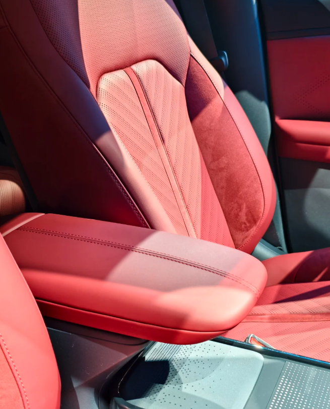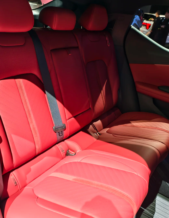 领克 Z20 曜红版的 “红” 并非单纯的色彩点缀,而是构建了完整的 “红运美学” 体系。其内饰设计传承法拉利、保时捷等超跑的运动基因,红色调呈现出高级感与层次感,打破了传统红色内饰的艳俗印象。在工艺细节上,该车采用箭头式打孔设计、仿麂皮顶棚、金属感音响罩等配置,将超跑级制造工艺下放到大众消费级产品中,让年轻人无需承担高昂成本,就能拥有兼具质感与个性的出行工具,契合了当下年轻群体对 “高端体验触手可及” 的需求。