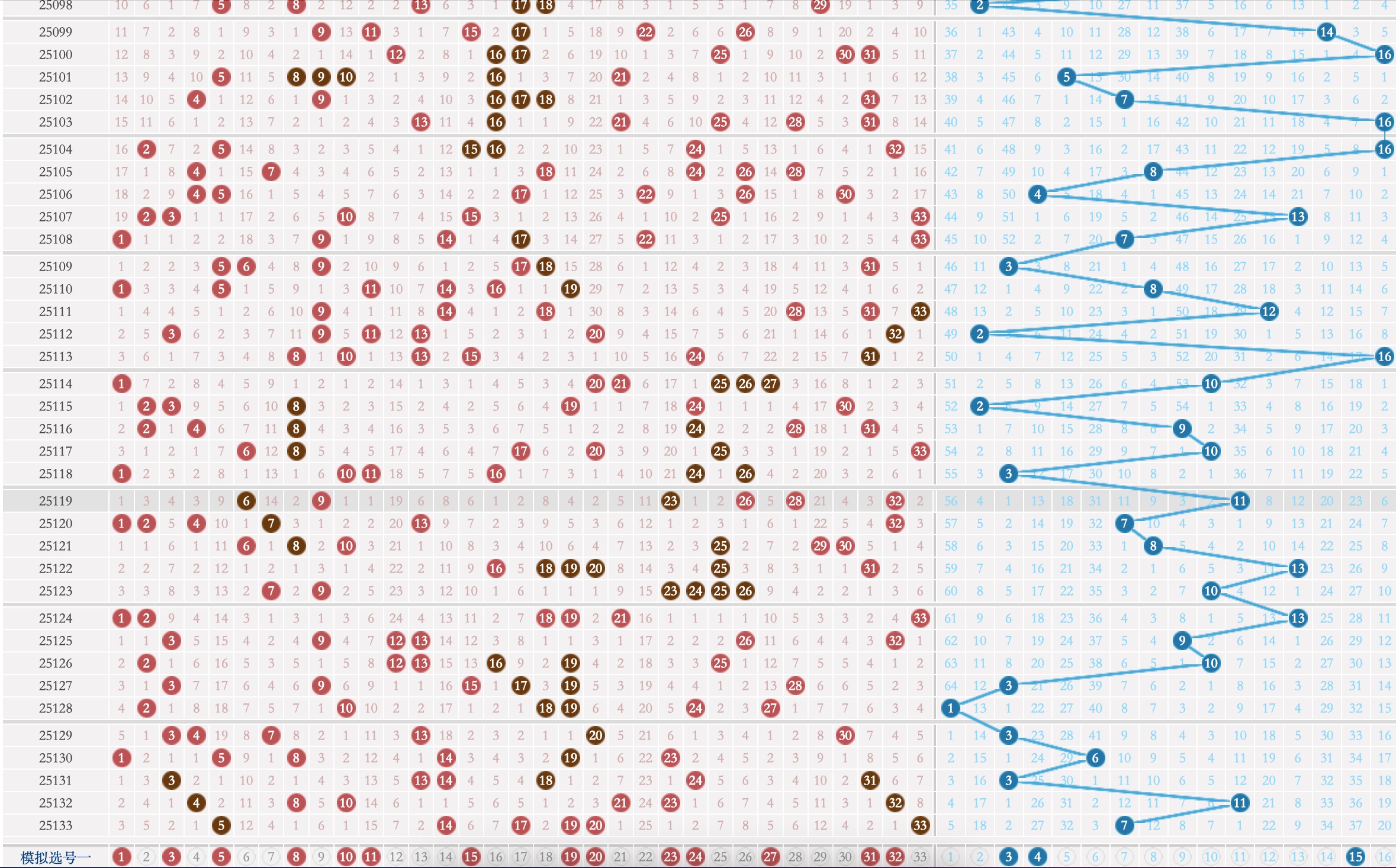 双色球25134期红球出球奇偶比考虑4:2或3:3走势,红球出球三区比考虑1:2:3或2:3:1走势,本期红球重号考虑5_19_20,红球冷号考虑11,红球胆码考虑11或31,本期红球直连号考虑中号段出球,有可能有两组连号,斜连号考虑一到两个出球趋势,本期红球首号考虑1_3_11出球,尾号考虑31或32,本期红球考虑9_3_2_1_5_0尾号码出球,篮球码重号暂不考虑,冷号考虑15,关注3,根据上述解析条件可知,