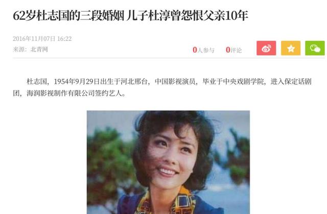 【2】北青网,2016-11-07,“62岁杜志国的三段婚姻,儿子杜淳曾怨恨父亲10年”.