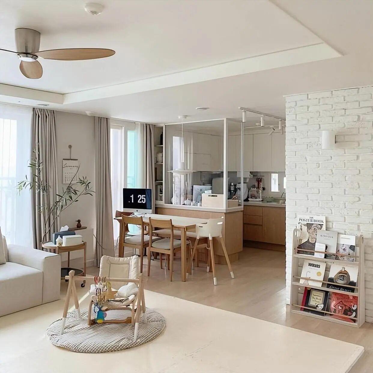 当然,也有例外,博主@山城,武汉一34岁太太的房子火了,家有熊孩子,依旧一尘不染,处处透着舒服的劲儿。