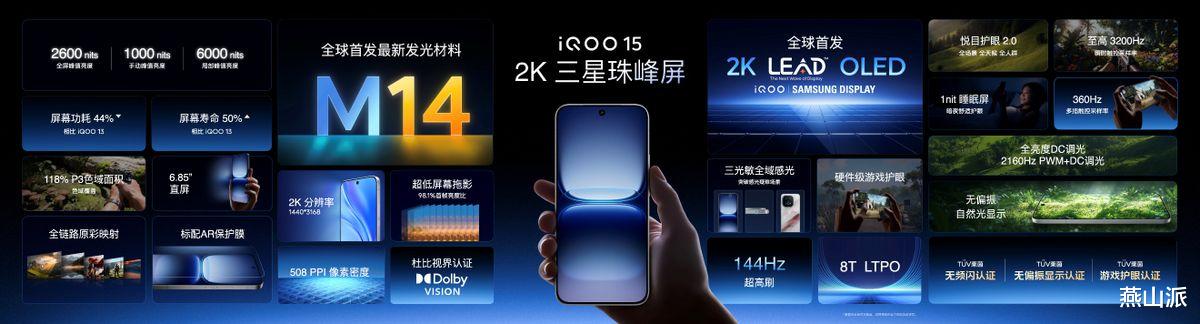 “跨代领先”iQOO 15 传承 iQOO 手机在实力和口碑的双重表现,搭载由第五代骁龙 8 至尊版领衔的“至尊性能组合”完全体,实现行业领先的性能表现,并在自研电竞芯片 Q3 和 Monster 超核引擎的支撑下,带来“全场景光线追踪+ 2K 原画超分+144FPS 无损超帧”,共筑行业领先游戏视效生态;更以全新演绎的国潮设计、超级潜望长焦以及更流畅智慧的 OriginOS 6等一系列强悍配置,打造一款“性能超长板,全面无短板”的未来性能旗舰。