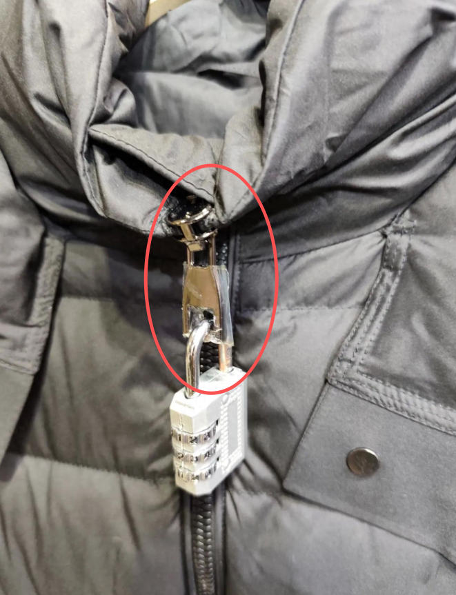 你没看错,就是锁。一些商家在衣服的拉链处以及口袋拉链处都装上了密码锁。