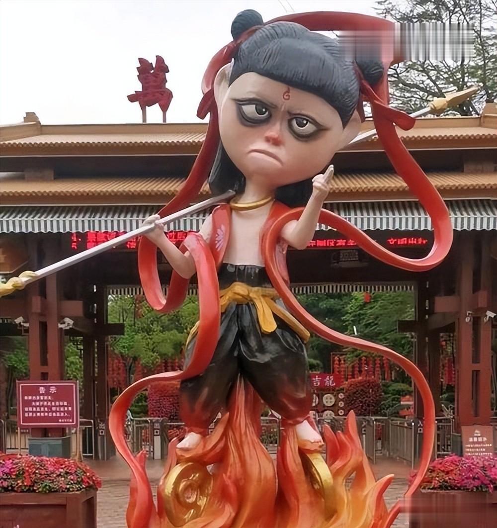 游客路过大多会拍照吐槽,大家心里的哪吒是脚踩风火轮、意气风发的模样,这尊雕像完全颠覆了传统认知。