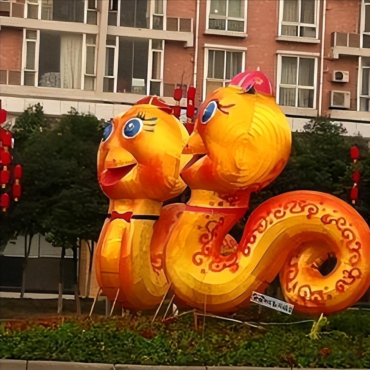 除此之外,各地还有不少雷人雕塑,四川资阳曾出现过“鸡头蛇”吉祥物,摆放在高速路口,头大身短,似蛇非蛇,没几天就因吐槽太多被拆除。