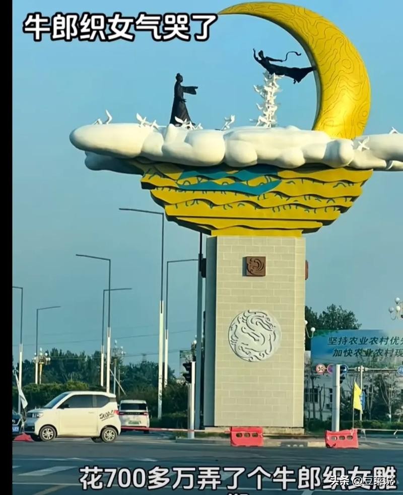 比哪吒雕像更离谱的是河南鲁山的牛郎织女雕塑,当初公布造价715万元,刚亮相就因造型怪异引发全网吐槽。