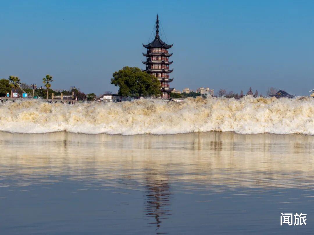 盐官作为千年古城,倚靠钱塘江畔,自古以来就是观潮胜地。每月农历初一至初六、十五至二十的大潮期,游客至此既能目睹气势磅礴的潮头奔涌,入夜后,还能聆听声似千军万马列阵而过的轰鸣。