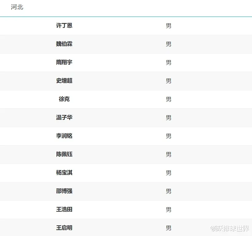 河北男排全运会12人名单:许丁恩、魏伯霖、隋翔宇、史增超、徐克、温子华、李润铭、陈佩钰、杨宝淇、邵博强、王浩田、王启明