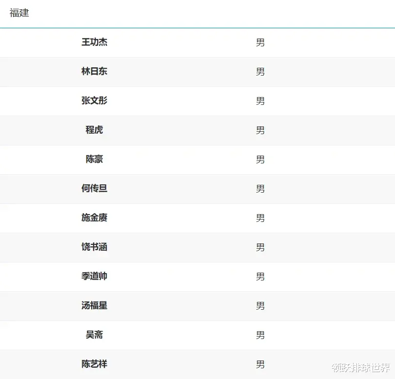 福建男排全运会12人名单:王功杰、林日东、张文彤、程虎、陈豪、何传旦、施金赓、饶书涵、季道帅、汤福星、吴斋、陈艺祥
