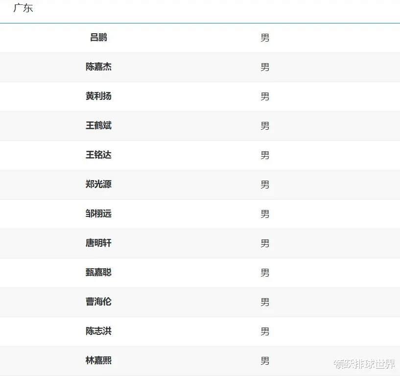 广东男排全运会12人名单:吕鹏、陈嘉杰、黄利扬、王鹤斌、王铭达、郑光源、邹栩远、唐明轩、甄嘉聪、曹海伦、陈志洪、林嘉熙