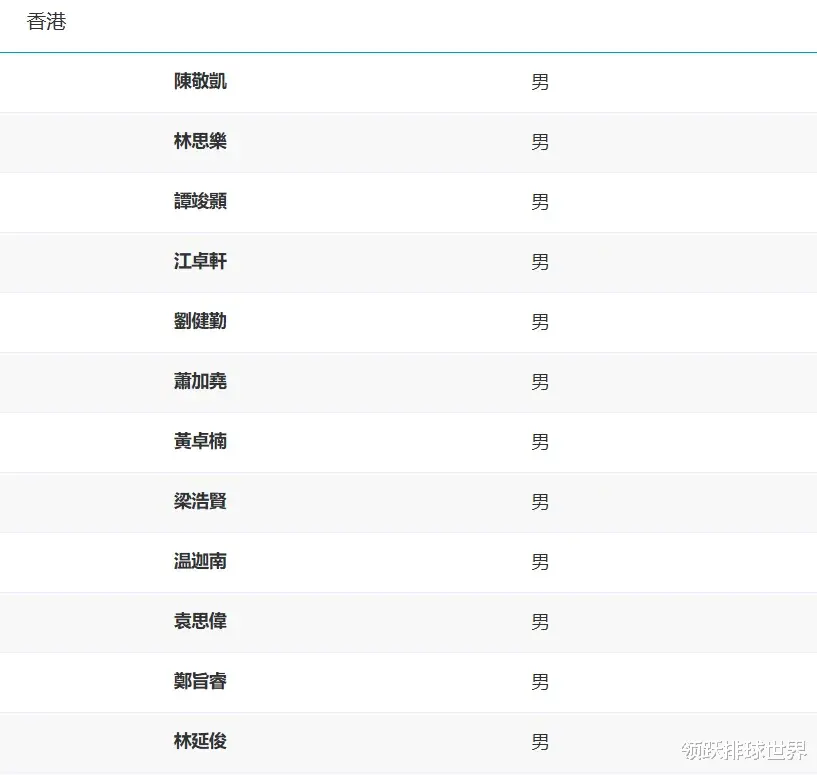 香港男排全运会12人名单:陳敬凱、林思樂、譚竣顥、江卓軒、劉健勤、蕭加堯、黃卓楠、梁浩賢、温迦南、袁思偉、鄭旨睿、林延俊