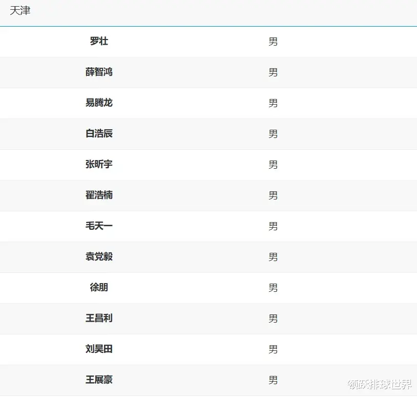 天津男排全运会12人名单:罗壮、薛智鸿、易腾龙、白浩辰、张昕宇、翟浩楠、毛天一、袁党毅、徐朋、王昌利、刘昊田、王展豪