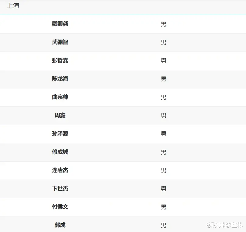上海男排全运会12人名单:戴卿尧、武弸智、张哲嘉、陈龙海、曲宗帅、周鑫、孙泽源、修成城、连唐杰、卞世杰、付侯文、郭成