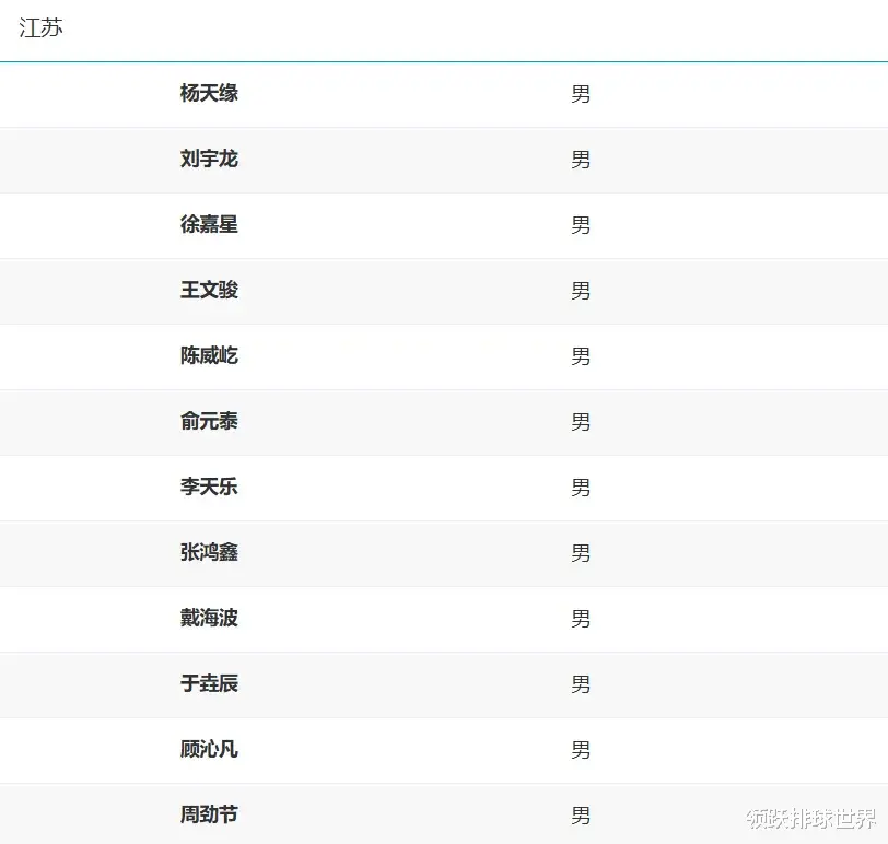 江苏男排全运会12人名单:杨天缘、刘宇龙、徐嘉星、王文骏、陈威屹、俞元泰、李天乐、张鸿鑫、戴海波、于垚辰、顾沁凡、周劲节