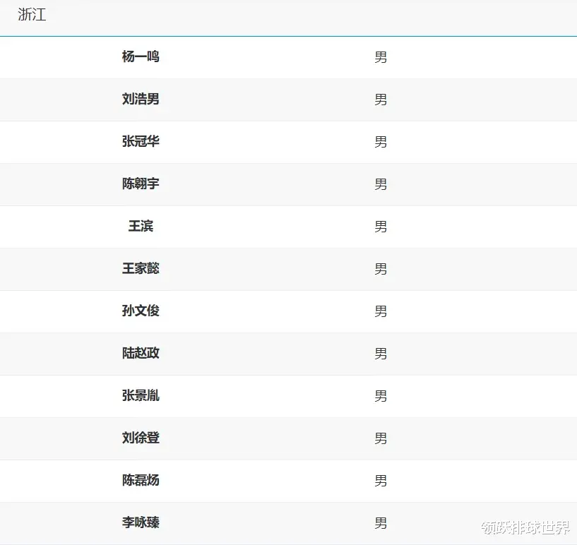 浙江男排全运会12人名单:杨一鸣、刘浩男、张冠华、陈翱宇、王滨、王家懿、孙文俊、陆赵政、张景胤、刘徐登、陈磊炀、李咏臻