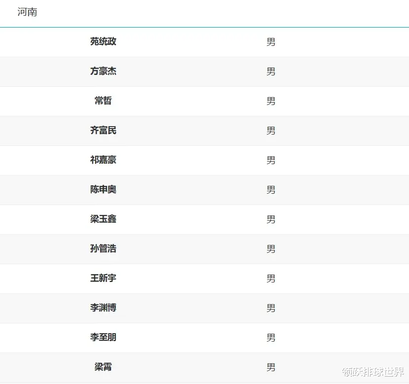 河南男排全运会12人名单:苑统政、方豪杰、常哲、齐富民、祁嘉豪、陈申奥、梁玉鑫、孙管浩、王新宇、李渊博、李至朋、梁霄