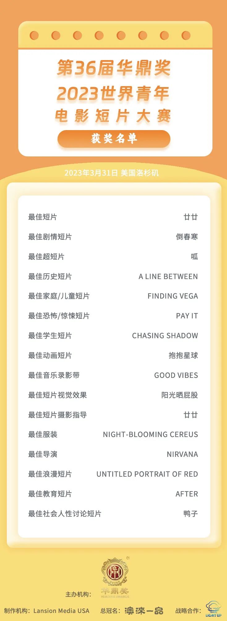 历时2个月,第36届华鼎奖电影短片大赛获奖名单终于公布了。
