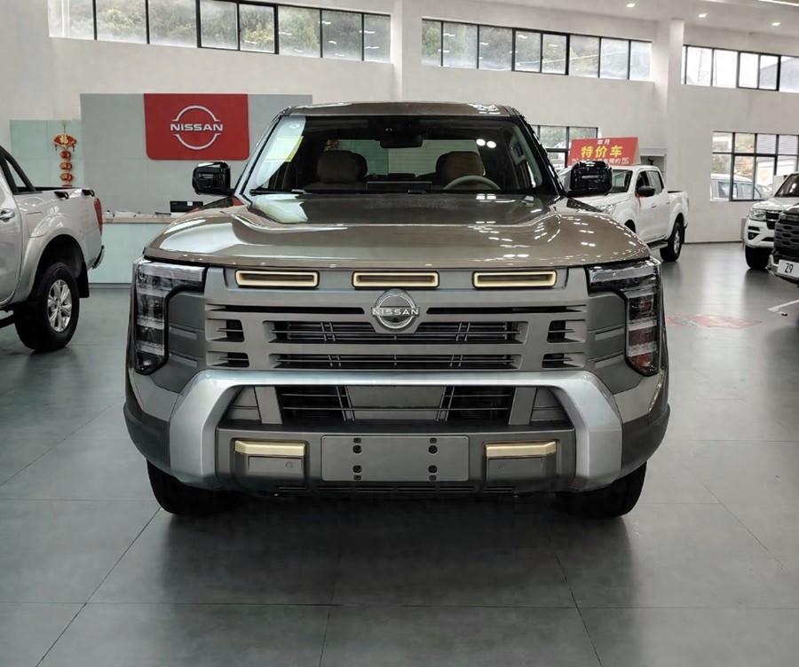 从实拍来看,日产全新皮卡在外观设计采用了比较硬朗的设计语言,根据版本不同,新车提供了两种前脸设计,其中,燃油版的前脸线条粗壮有力,保险杠像个拱门,引擎盖上还有三个凹槽,看上去非常硬朗,而T字形大灯加入了LED光源点缀,给人的感觉很有科技感。
