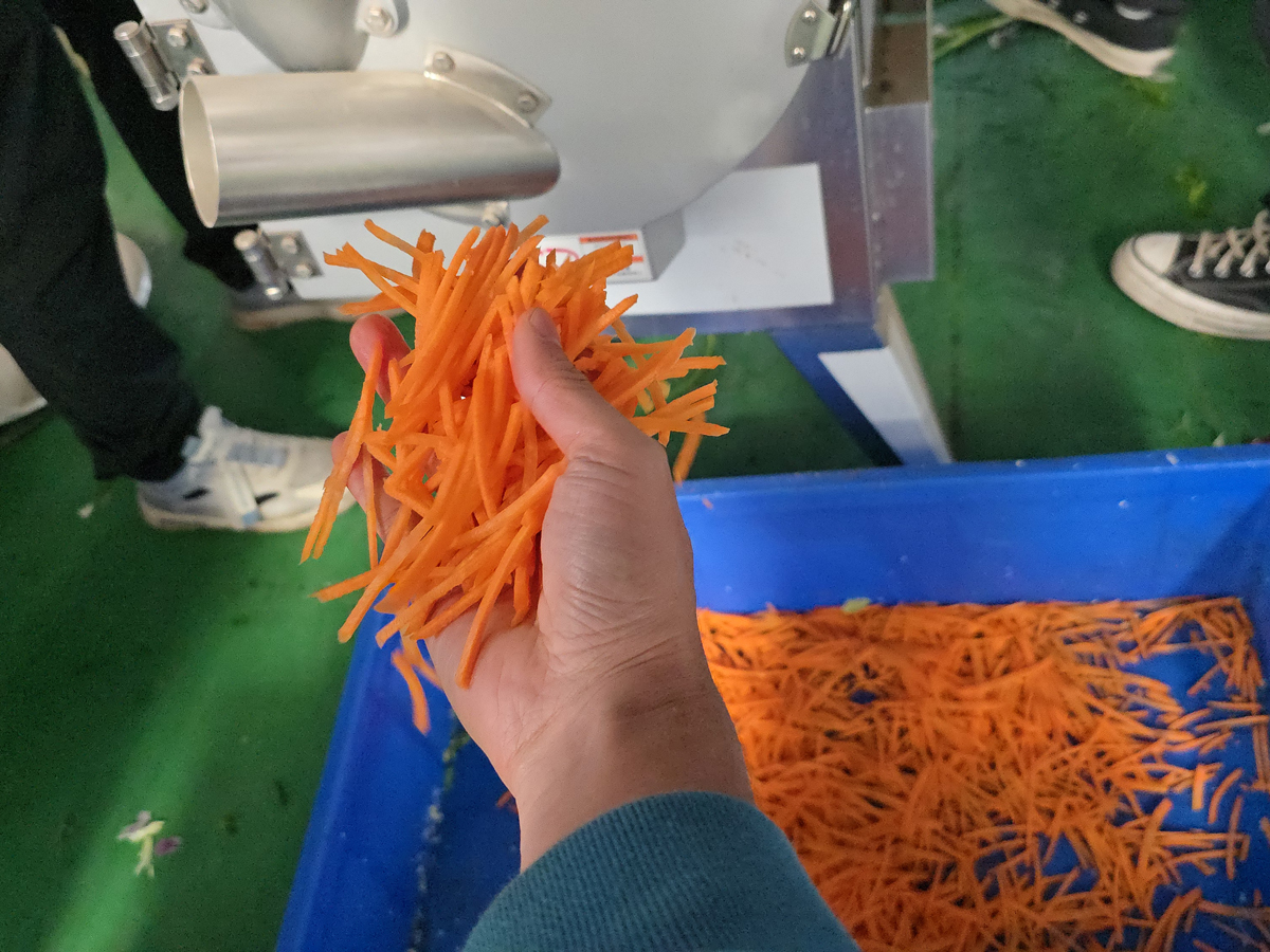 另一头聚焦根茎类瓜果加工,萝卜、土豆、莲藕等食材能一键切成均匀的片、丝、丁,切面光滑无碎渣,保障食材品质。