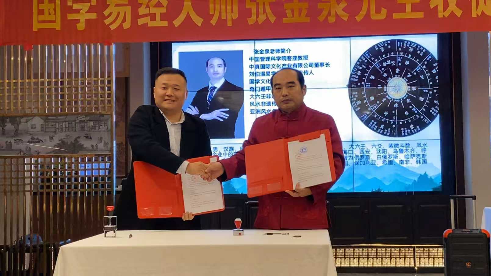 在拜师仪式上,俄罗斯南联邦大学中俄人文合作中心张精卫先生与张金泉先生签订了中俄人文合作协议。这一协议的签署,象征着中俄文化交流迈向了新的台阶,易学智慧将在更广阔的舞台上传播与交流。此外,华隆生物科技集团董事长还聘请张金泉大师为该集团战略顾问,并颁发聘书。