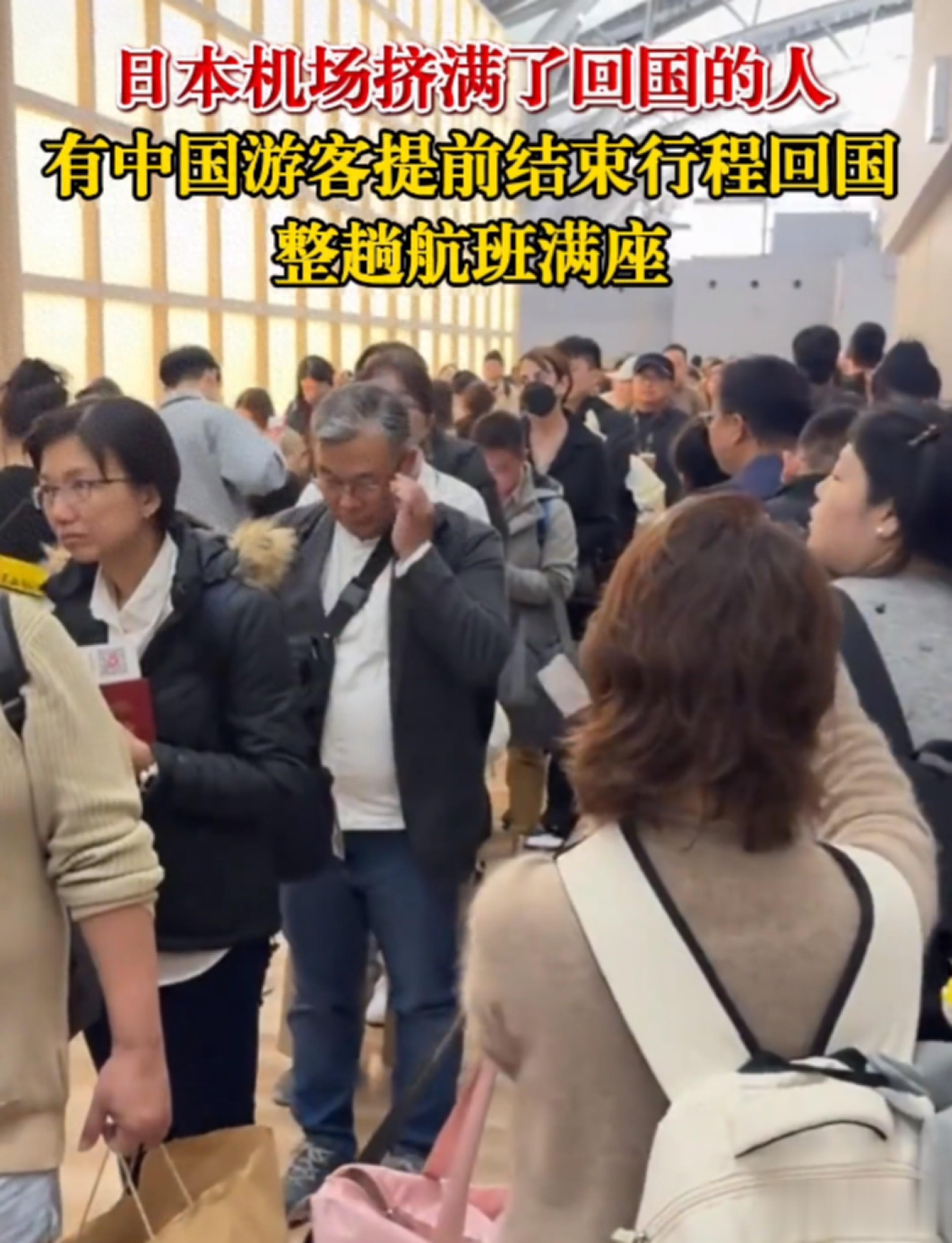 候机大厅被塞得满满当当,一眼望去全是中国游客焦灼的身影,提着大包小包,队伍绕了好几圈,不知道的还以为是中国的“春运”提前上演到了东京。