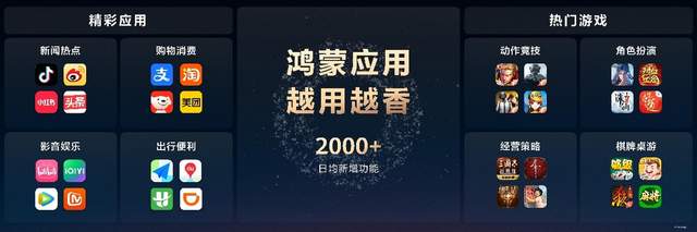 鸿蒙应用已能覆盖日常所需,覆盖了便捷生活、出行文旅、金融理财、社交资讯、政务民生、生产力工具、影音娱乐、游戏、新闻媒体、企业办公等18个垂域,数千政企内部办公应用加速上线。