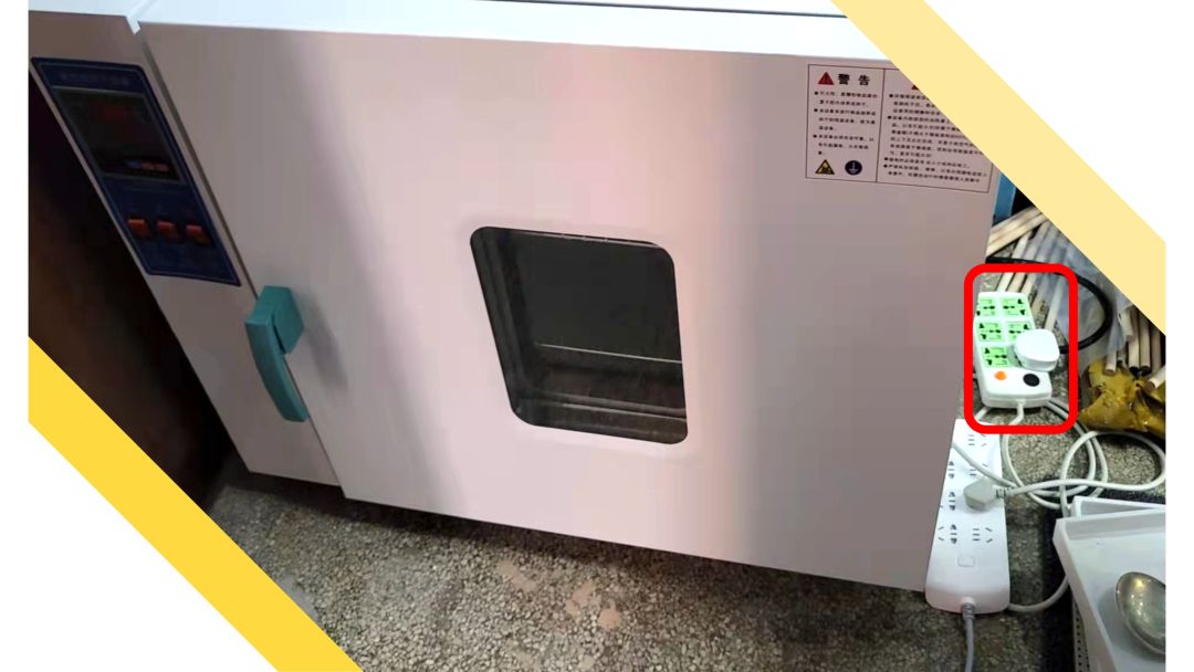 正确做法:小型加热设备(电吹风、热风枪、油浴锅、电烙铁等)使用完毕后应及时关闭电源并拔除插头