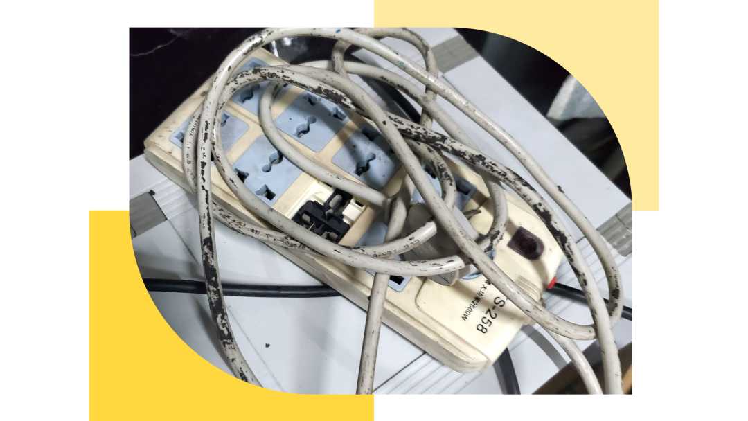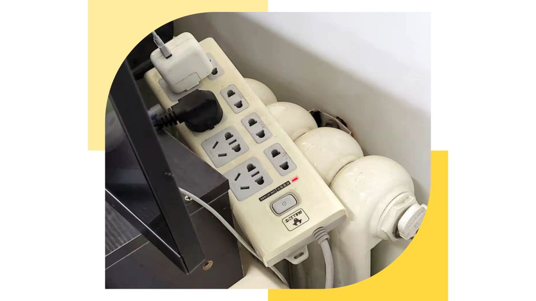 安全风险:用电设备功率超过接线板负载能力;接线板置于地面