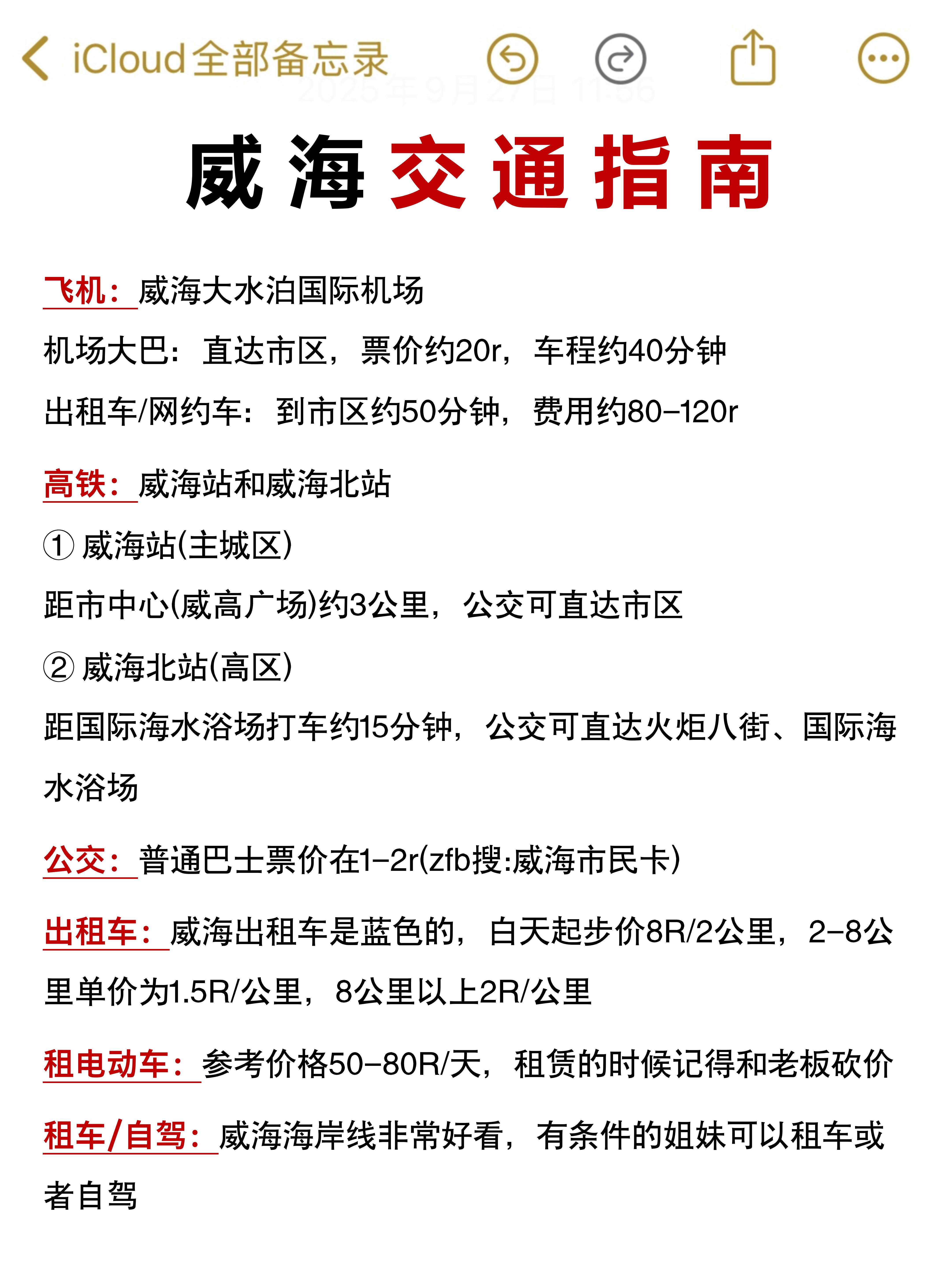 🛵电动车/自驾:威海景点相对分散,适合环海租车