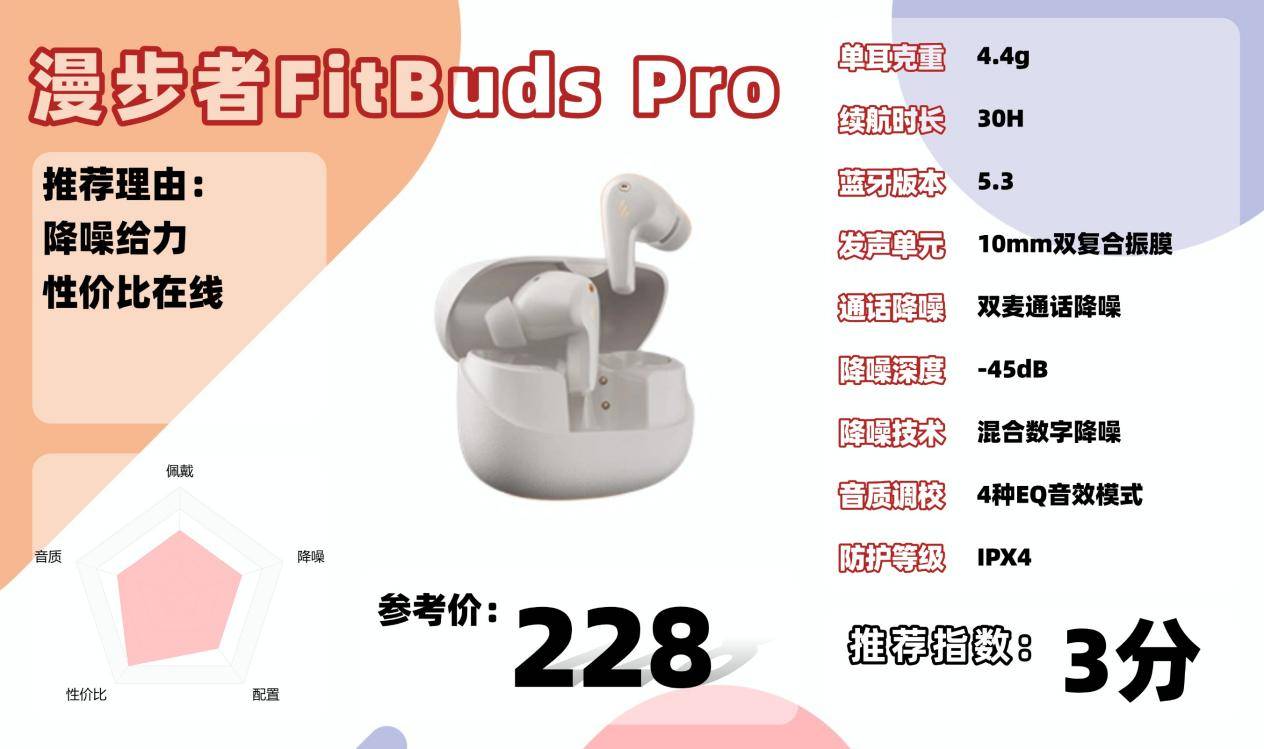 2、漫步 者 Fit Bu ds Pro