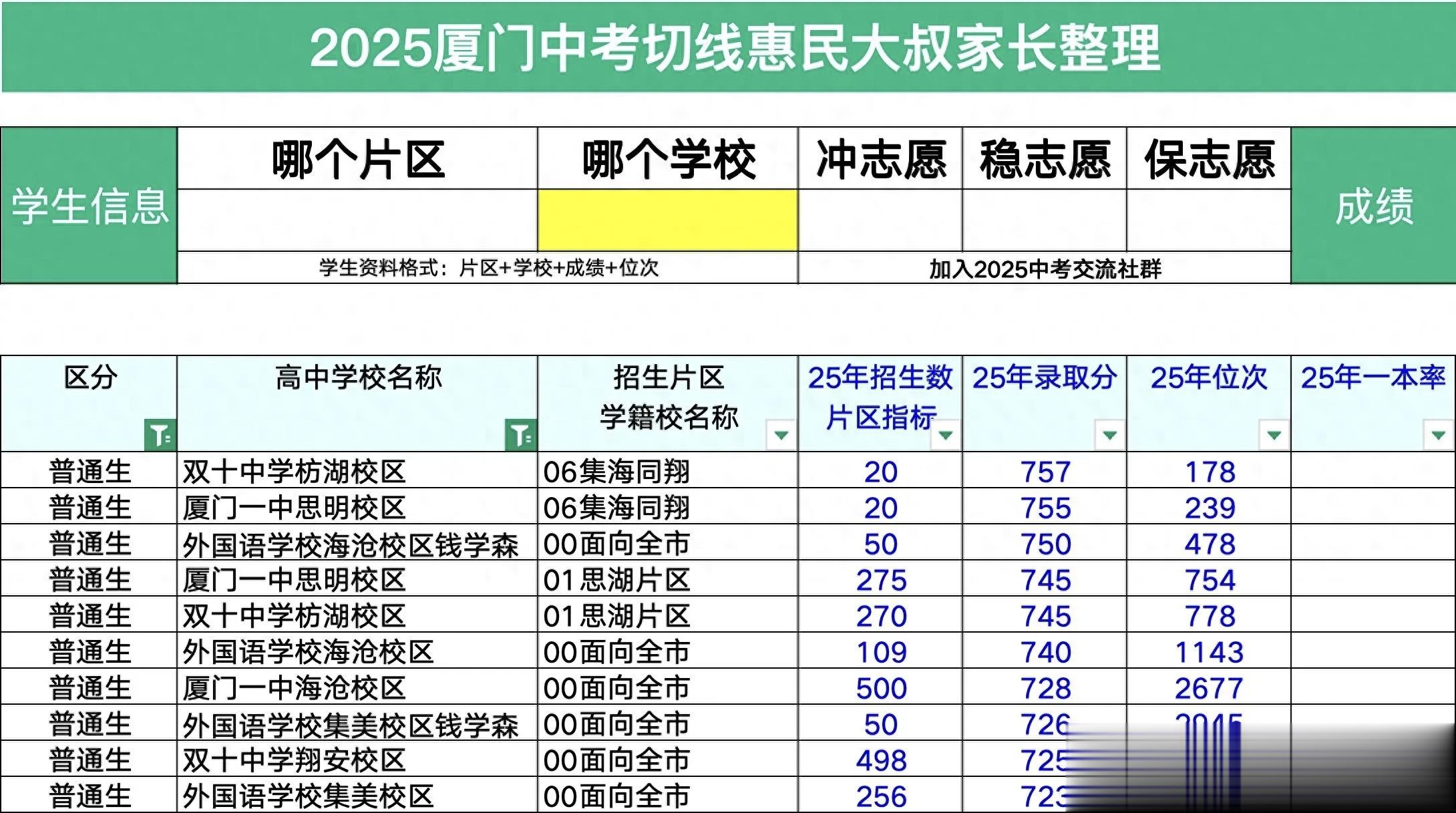 二、普通中考定向生路径。2025 年,福建省要求优质高中定向生比例达到 70%,厦门市严格执行了这一规定。不过,厦门各校都设定了降25分的定向底线。比如一中思明校区正常录取线是745分,则定向分不得低于720分。这就导致部分学校定向名额用不完。浪费的名额又回到统招池子。